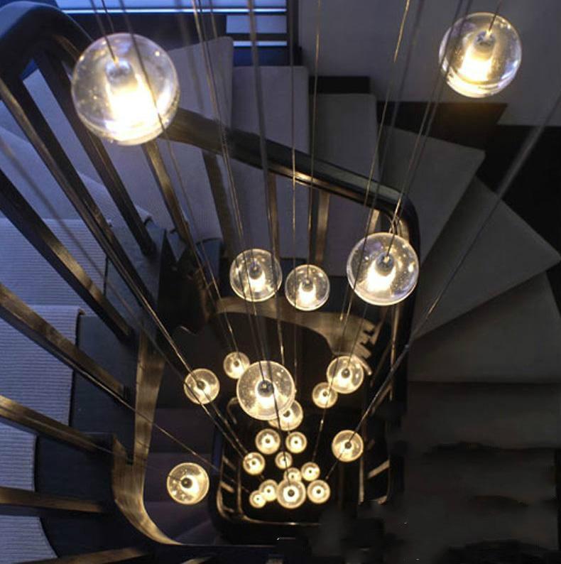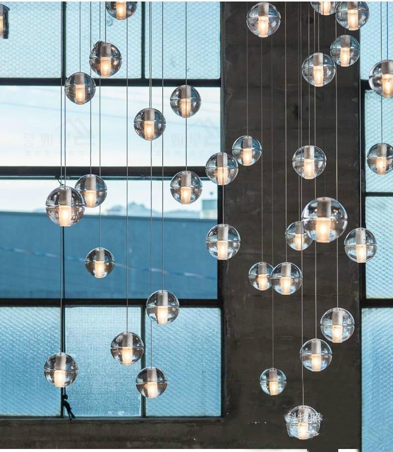 Mayorista de Nueva lluvia de Meteoros de cristal bola de cristal colgante de la lámpara de iluminación simple de la personalidad creativa de la escalera de la lámpara de las luces LED